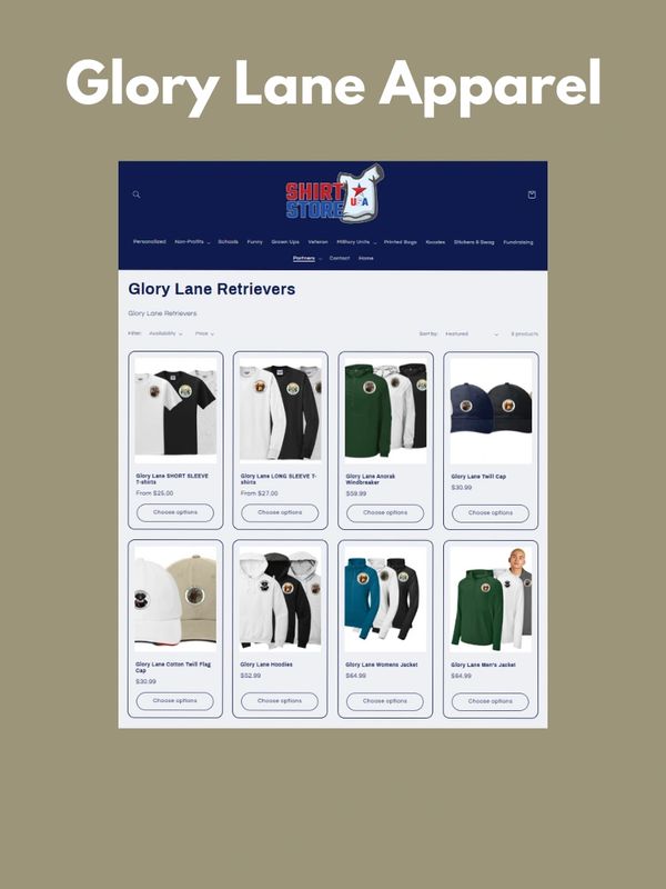 The Glory Lane Collection Outfits your training adventures with comfy tees and durable jackets, perfect for training sessions and leisurely strolls